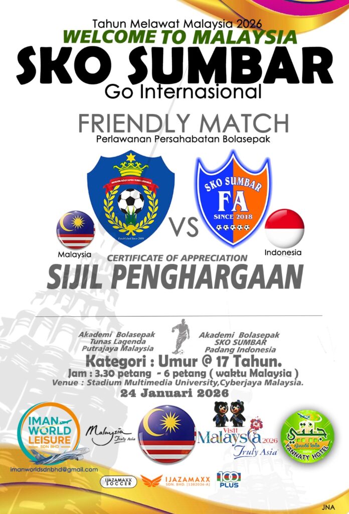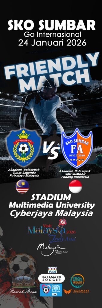 CYBERJAYA – Padang MMU Cyberjaya bakal menjadi medan penyatuan dua negara serumpun apabila Akademi Bolasepak Tunas Lagenda Putrajaya (Malaysia) dijadualkan menentang Akademi Sekolah Keberbakatan Olahraga (SKO) Sumbar dari Indonesia dalam satu perlawanan persahabatan kategori Bawah 17 Tahun (U17).