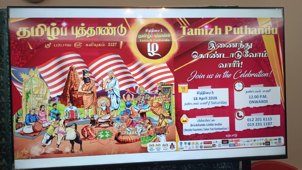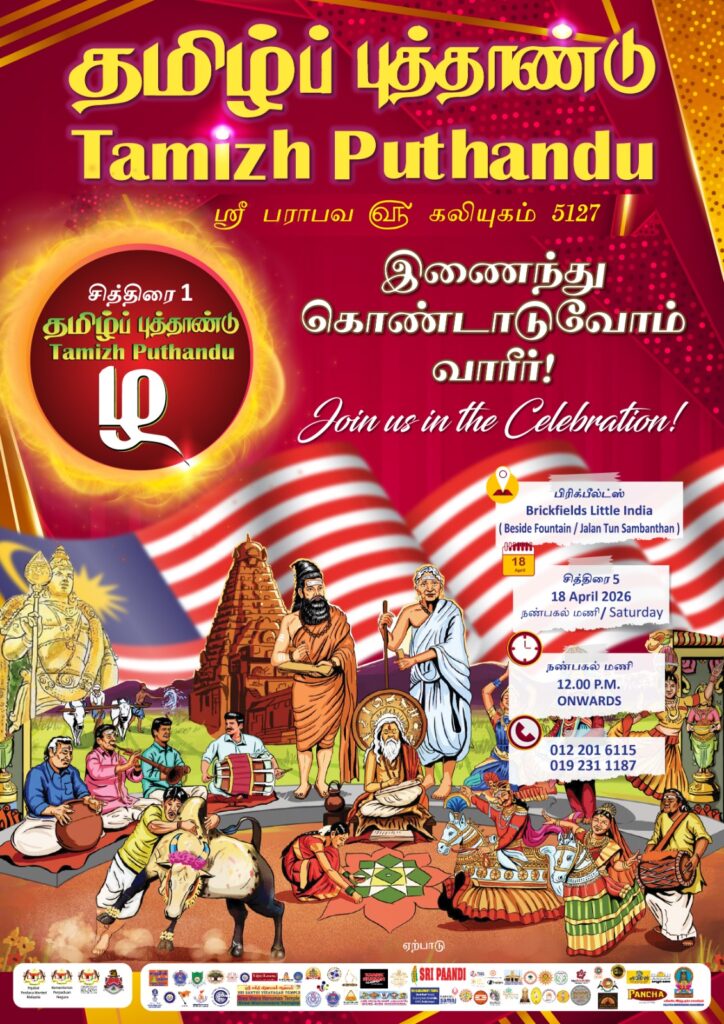 BRICKFIELD, 8 APRIL 2026 – Sambutan Tahun Baru Tamil atau Tamizh Puthandu pada tahun ini bakal diraikan dengan lebih meriah menerusi penganjuran sebuah festival kebudayaan berskala besar yang menghimpunkan lebih daripada 35 pertubuhan bukan kerajaan (NGO). Program ini turut mendapat kerjasama Kawasan Rukun Tetangga Brickfields, Brickfields Business Community Society serta kuil-kuil sekitar Brickfields.